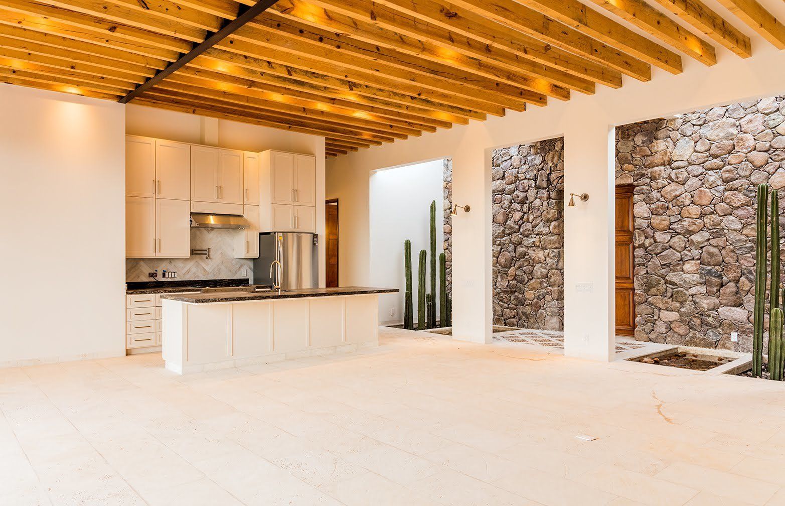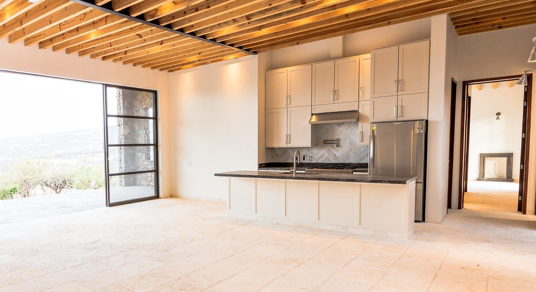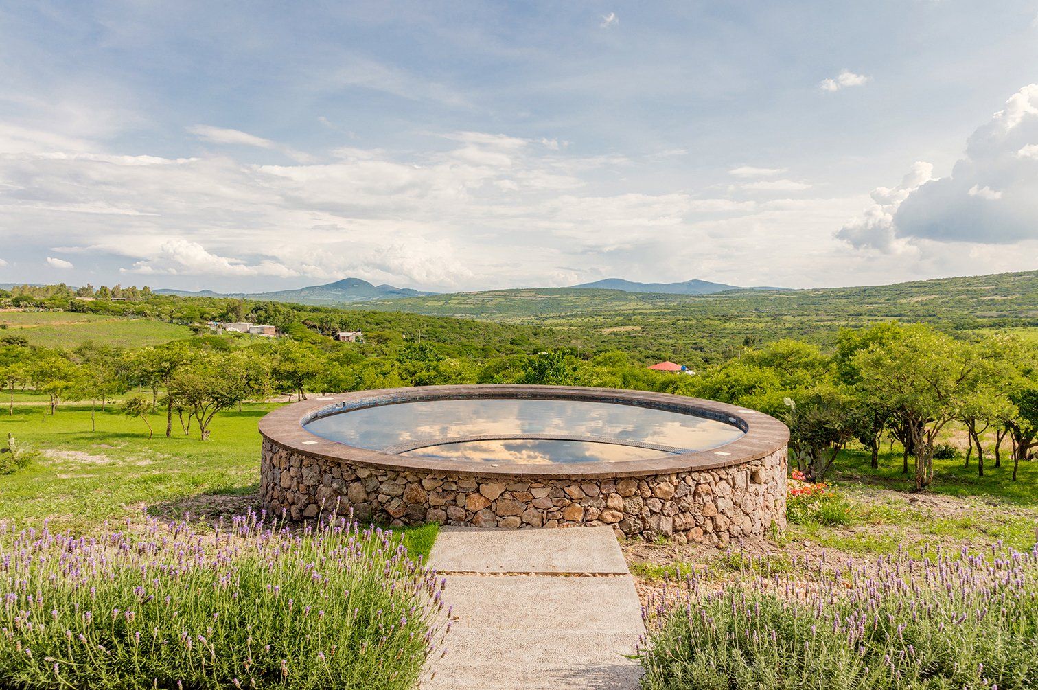 This country estate was designed and built with sustainability and energy-saving in mind. The walls of the Main House and Casita were built with structural concrete insulated panels. These walls, partly clad with rustic river-stones sourced entirely from the property, give an authentic Mexican Country feel, and provide an extra layer of protection from the elements. No need for air-conditioning in the summer here, high up in the temperate mountains of Central Mexico. For the mild winter months, there is a five-zone radiant heating system which guarantees more comfort in heating. Who could resist the sensation of walking bare-foot on a heated floor? Together with the strengthened high-density expanded polystyrene roof panels, this whole complex has a high energy-saving insulation capacity for year-round comfort. There is a 3kW solar PV system to keep energy costs to a minium. The pool and spa have 8 solar panels for heating which keep the pool at a comfortable temperature year-round.