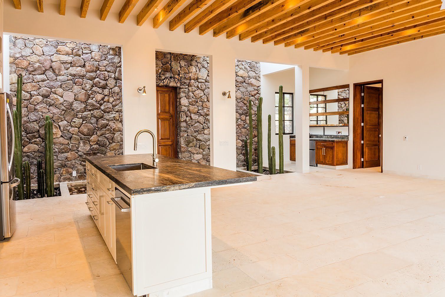 Finca El Ensueño is a newly-completed country estate nestled within a secure gated community of four properties, in an exclusive natural environment just twenty minutes from the vibrant historical center of San Miguel de Allende. On the main road to the community of Jalpa, this secluded tree-lined custom-designed property sits on 1 hectare (2.5 acres), and is fully fenced, with an electric gate and extensive camera security system. The complex employs a full-time security guard 7 days a week who patrols the property and is available from 7pm to 7am.